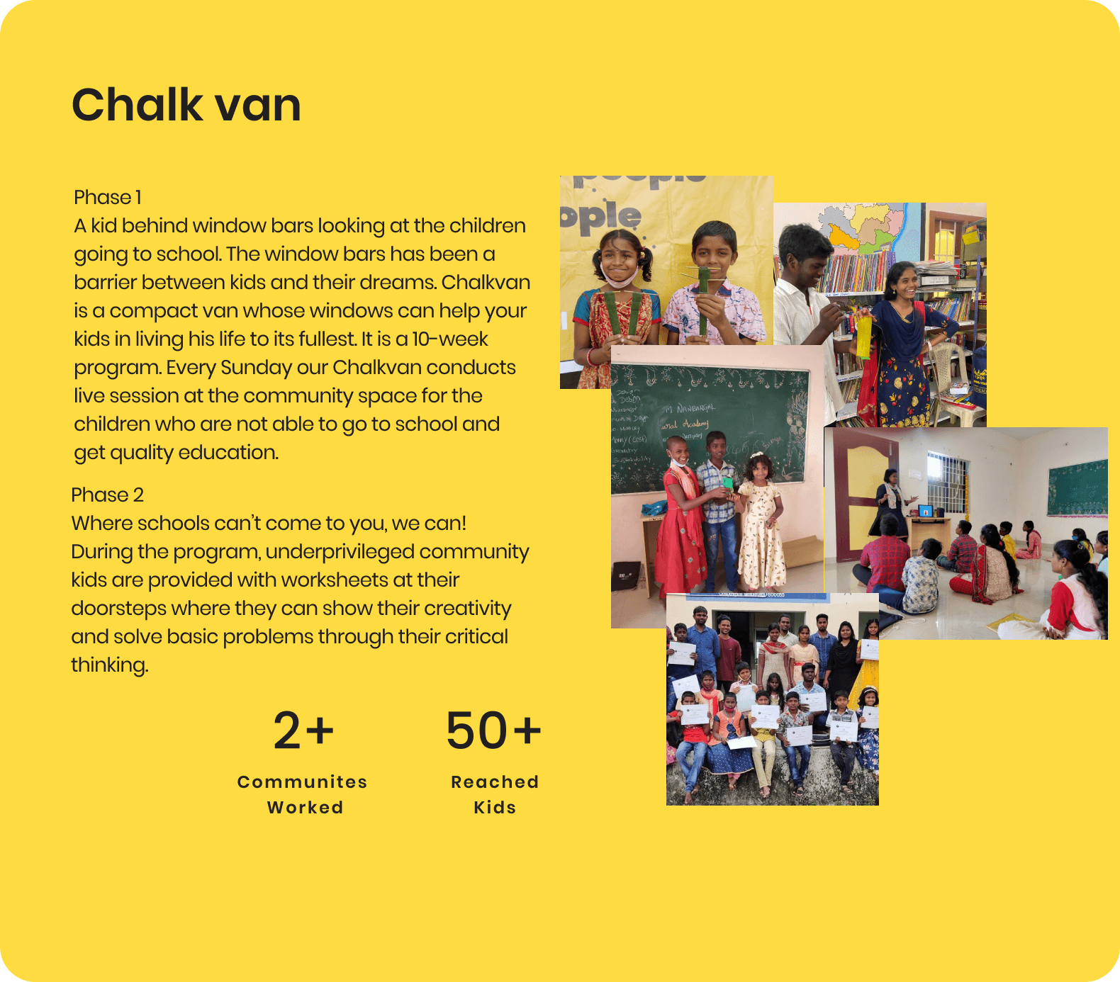 Chalk lab works on three aspects Design, Creativity, Social development,